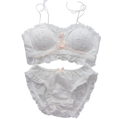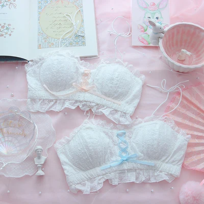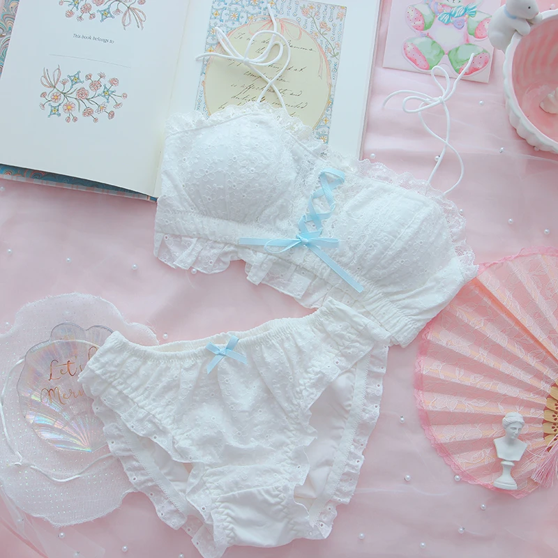 The ribbon on the chest is available in blue and pink. The lace edge full of retro feeling is really a girl's heart. The shoulder strap is designed with lace, which is very versatile with suspenders. The back is designed with three rows of buttons, which gives you a stable and safe wearing feeling. The underwear part is also a solid and delicate pure cotton feel. The whole set of underwear is fairy and easy to wear!
