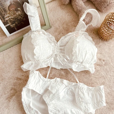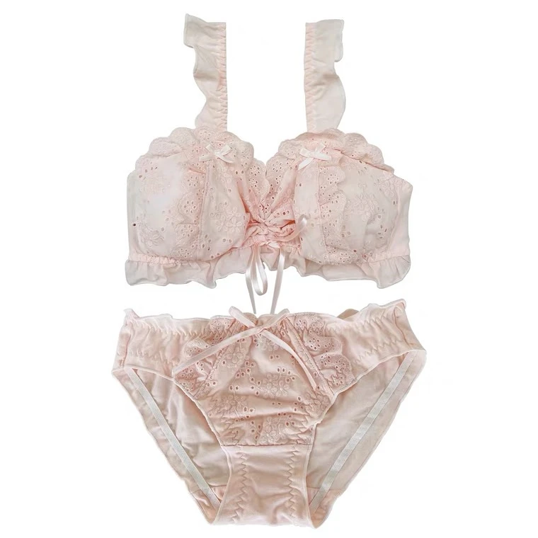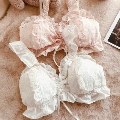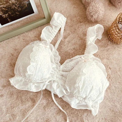 Small chest artifact, lace to close the auxiliary breast, high beauty gathering, embroidery lace, romantic fairy beauty, inclusive of the full cup, safe and light proof, sweet embroidery cup surface, ruffle edge, cross ribbon decoration, no sense of restraint, and can also be used as a sleep bra.