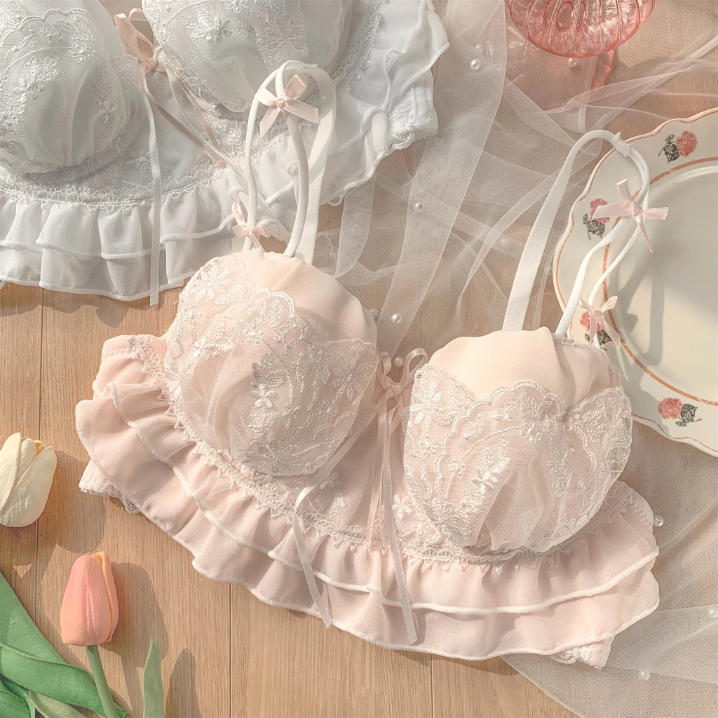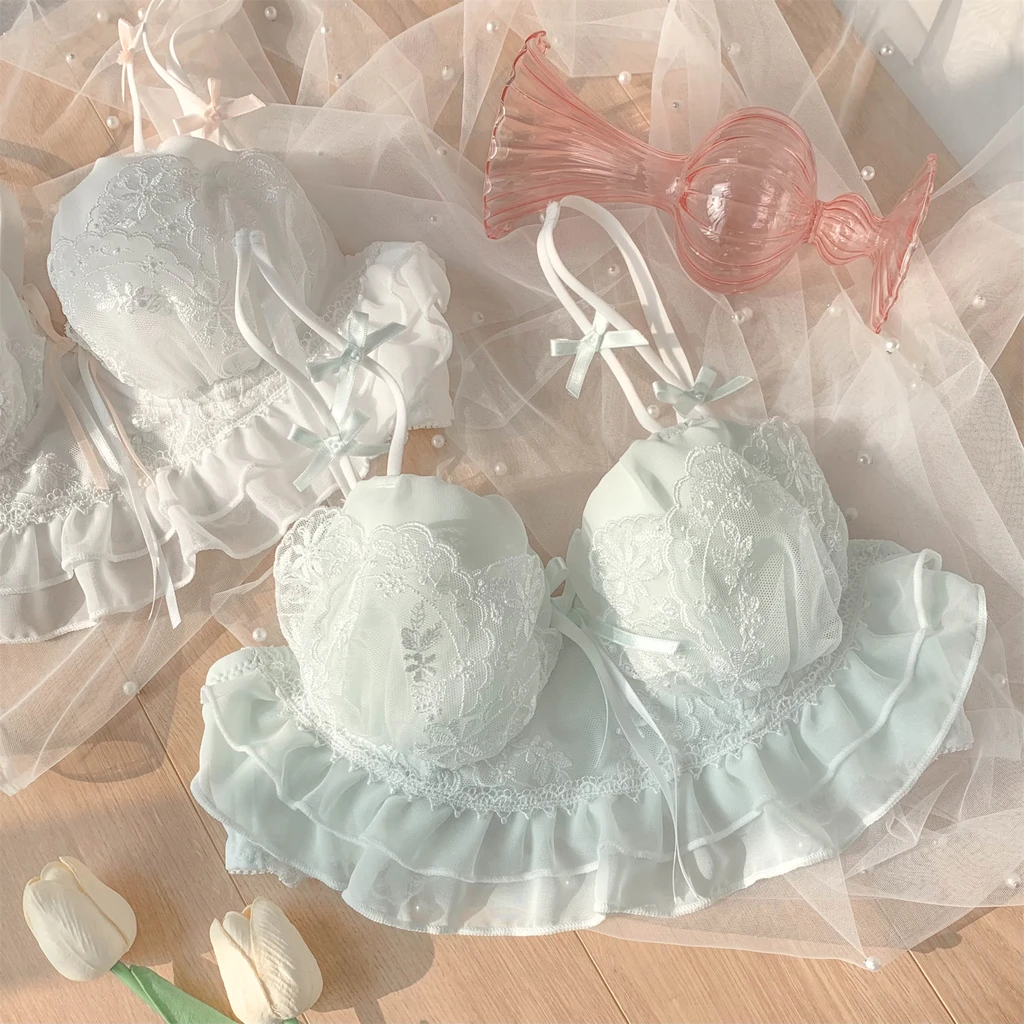 The sweet and gorgeous lalita style underwear, with lace lightly covering the cup surface, is very fairy in the shallow layer. The embroidered flowers are exquisite and lifelike. There is a trace of nobility in the beauty of the body, and the temperament is not good. A lace hem that spreads like a mermaid's tail! Immortal desire directly burst! The meat covering effect is also pulled full in a straight line.