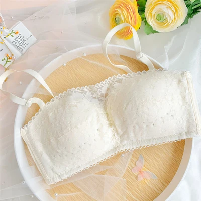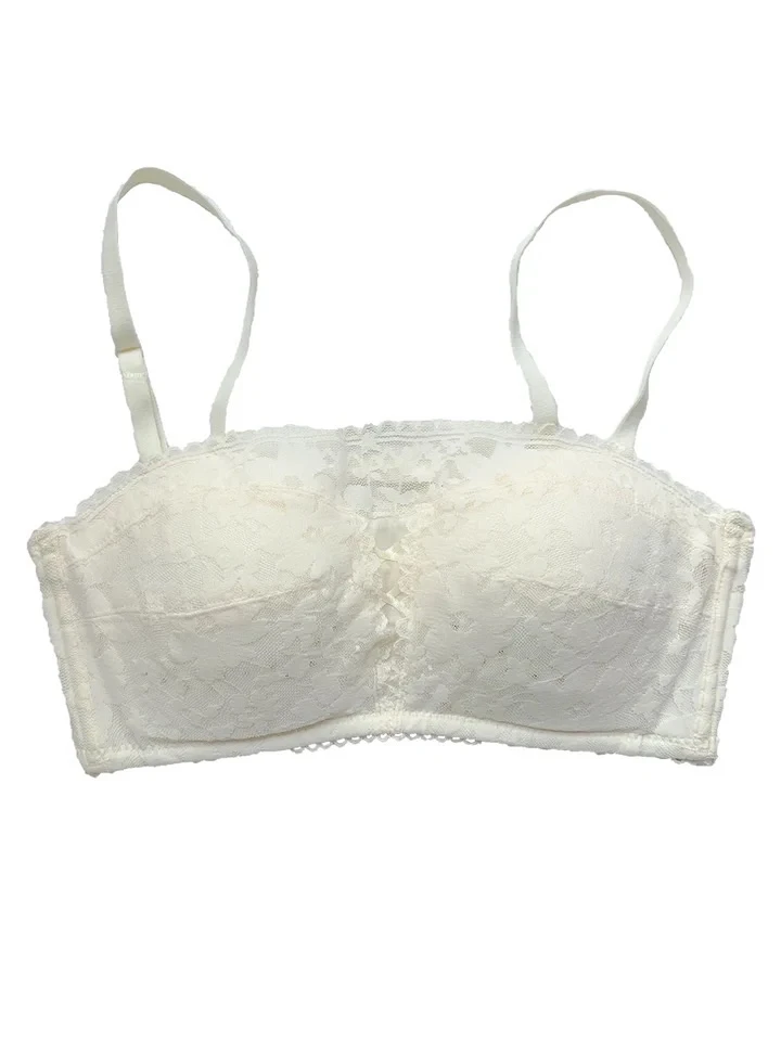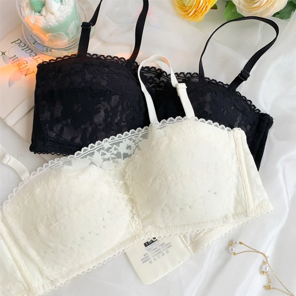Sweet and fairy lace bra underwear, cream lace cup surface, soft and silky touch, with hollow binding in front of the chest, sexy and resourceful, the shoulder strap can be removed and changed into a bra in one second, and the flank is raised, especially for meat collection, which is super thin! The inner cotton cup is as thin as. 2cm, which is very light and breathable, and can easily solve the trouble of sweating in summer.