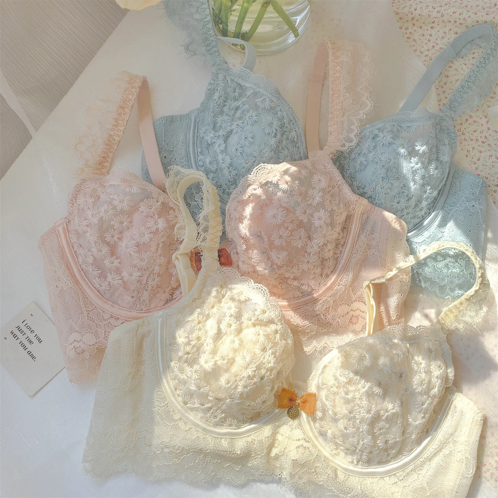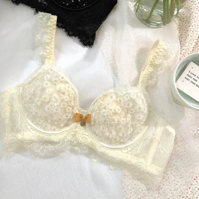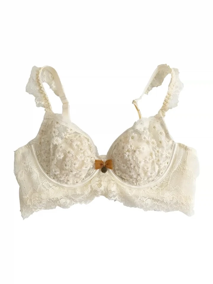 The fairy full Daisy embroidery series underwear, 0.3cm ultra-thin lace ear free cup, clear and thin, dotted with small Victoria chrysanthemum flowers and sugar Brown retro bow, not only has French sexy slightly drunk, but also does not lose girls' sweetness, intimate and high side ratio, completely say byebye to fat, and even eyelash lace shoulder straps are very exciting for cubs. Be careful in summer