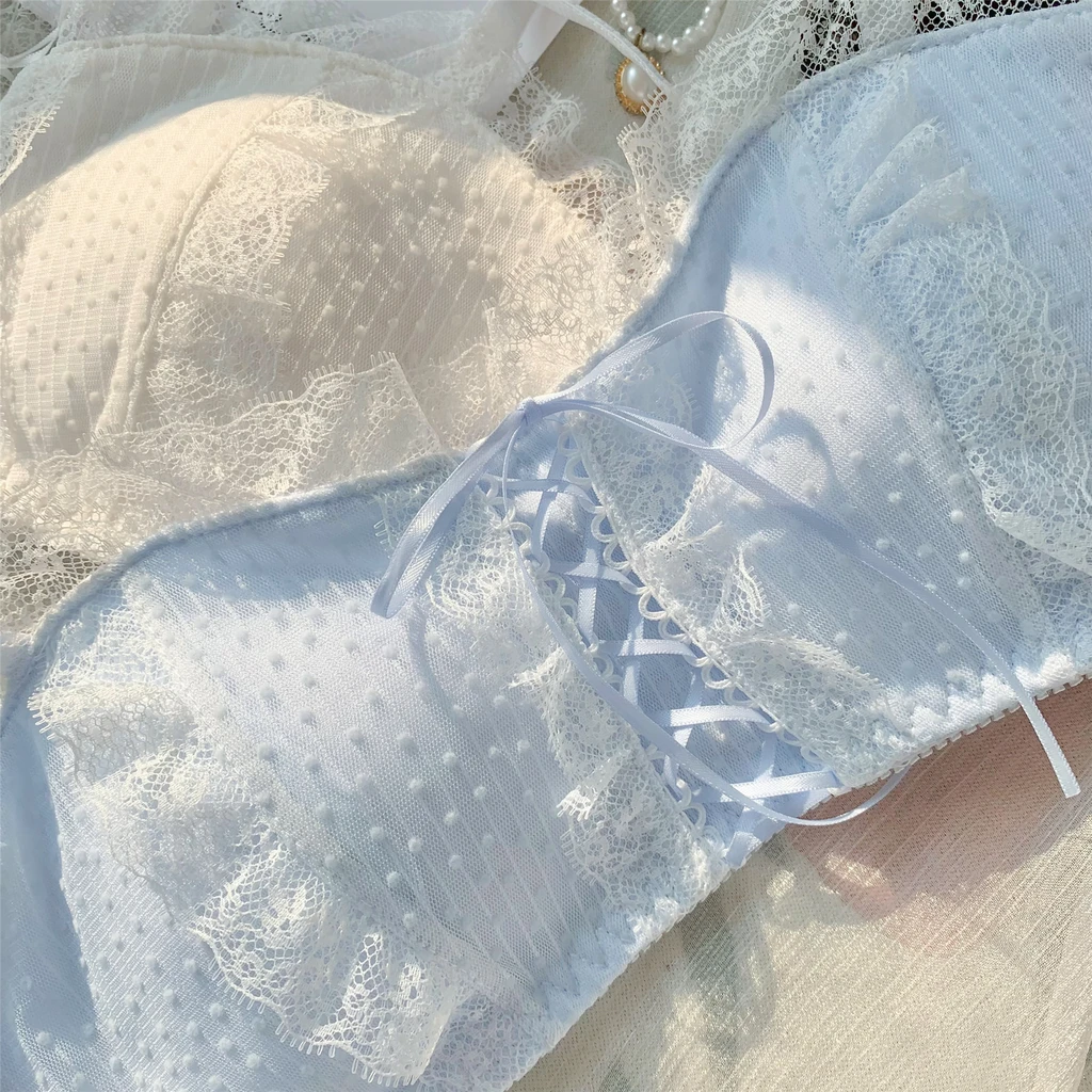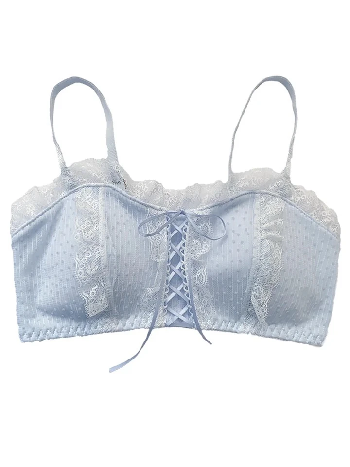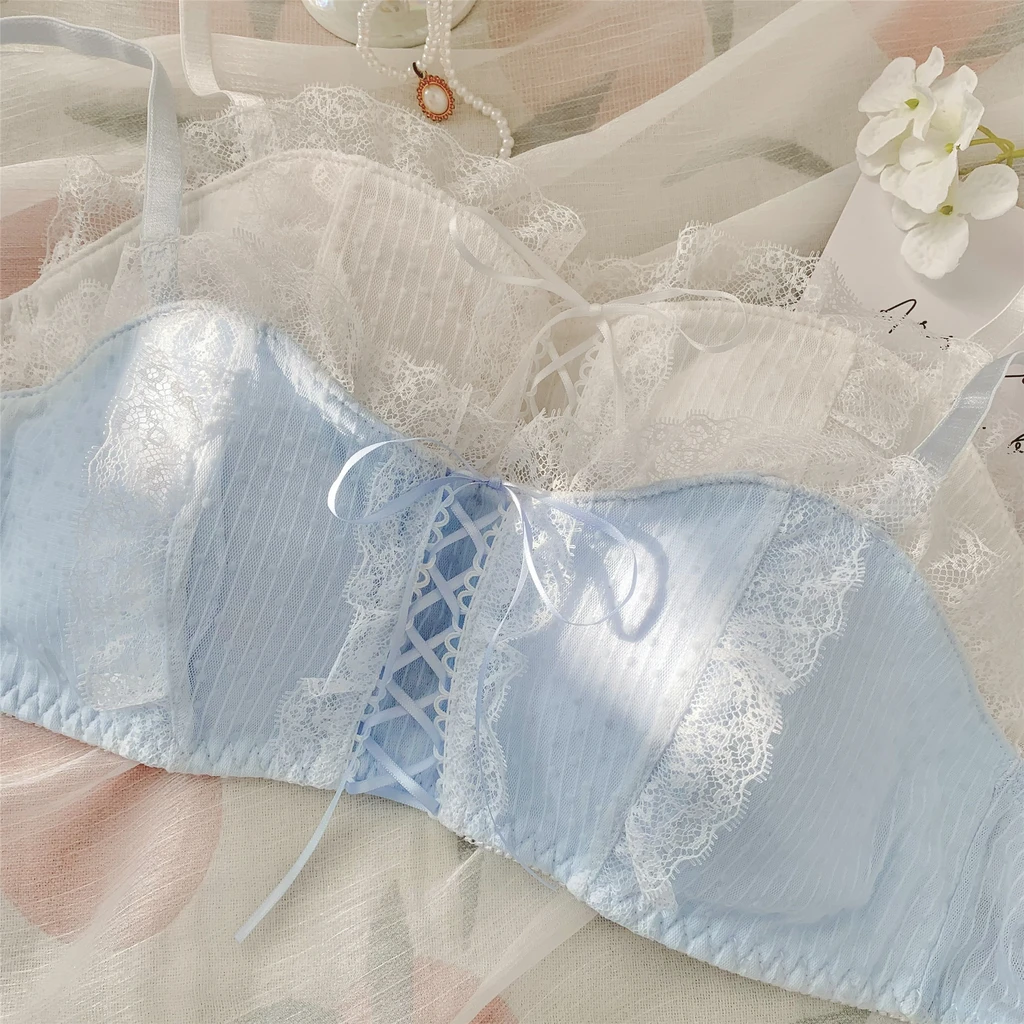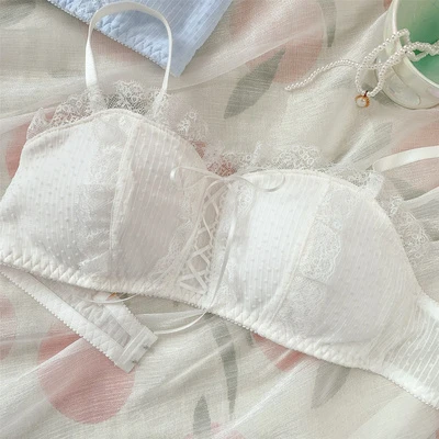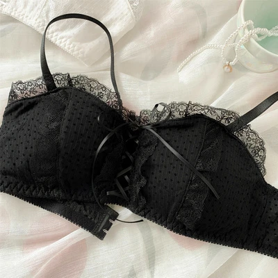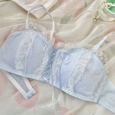 Pure and tender cotton comfort small chest bra, the cup surface is light and thin lace design with a little ingenuity, pure campus first love style, very exciting, chest bow tie is a little sexy, girls are careful, cute and provocative, cotton underwear is close to the skin and breathable, without steel ring constraints, which is suitable for flat chest or small chest girls.
